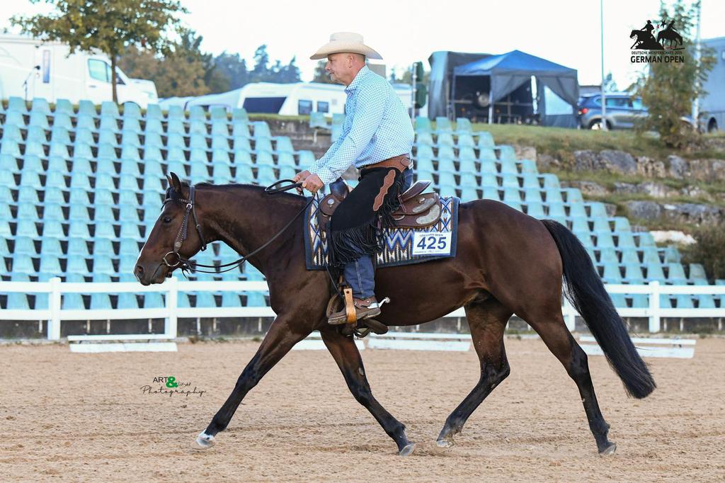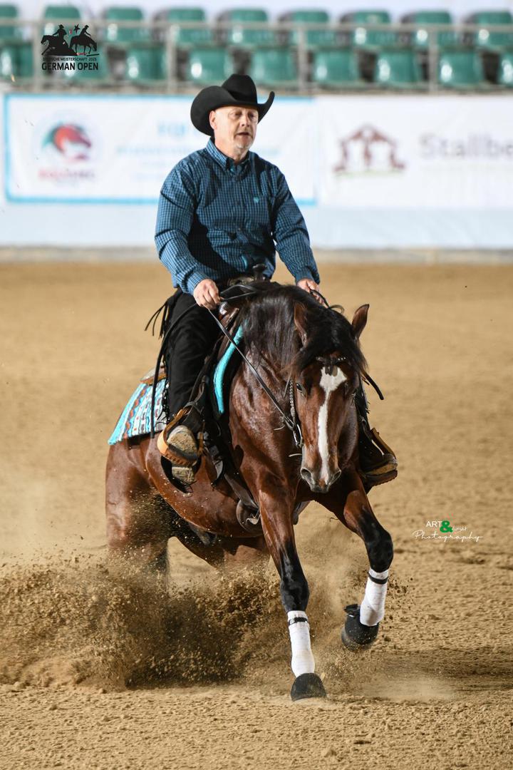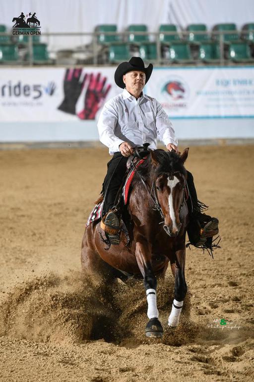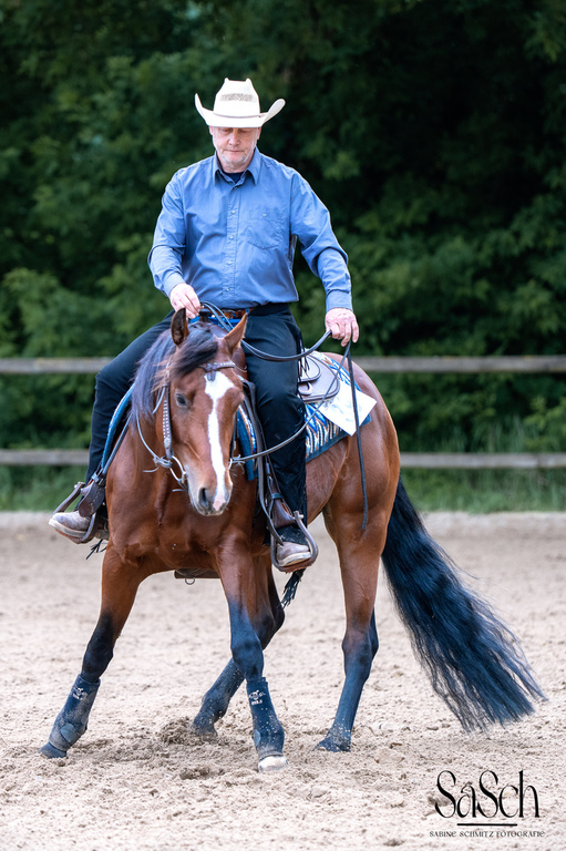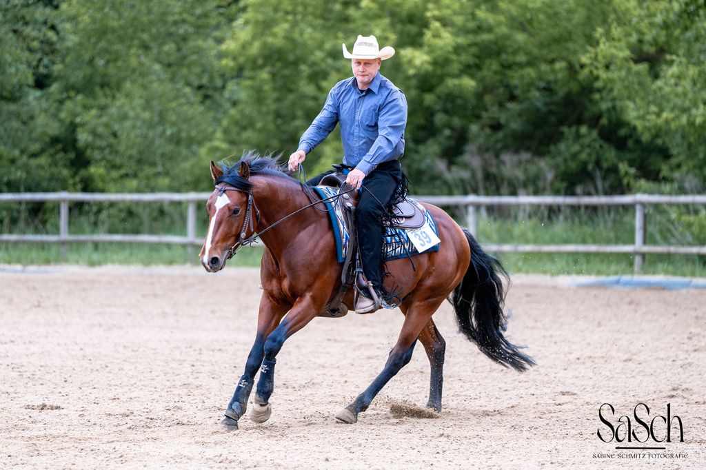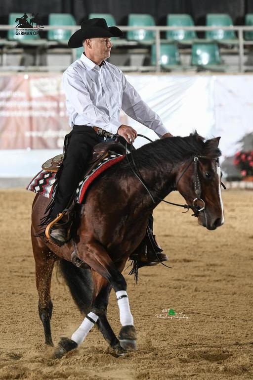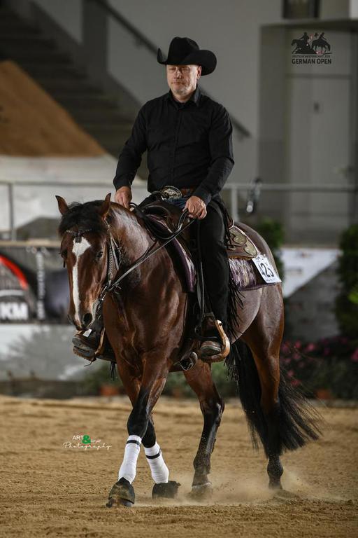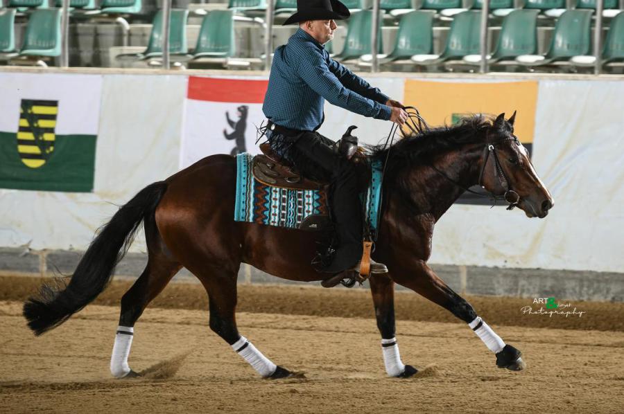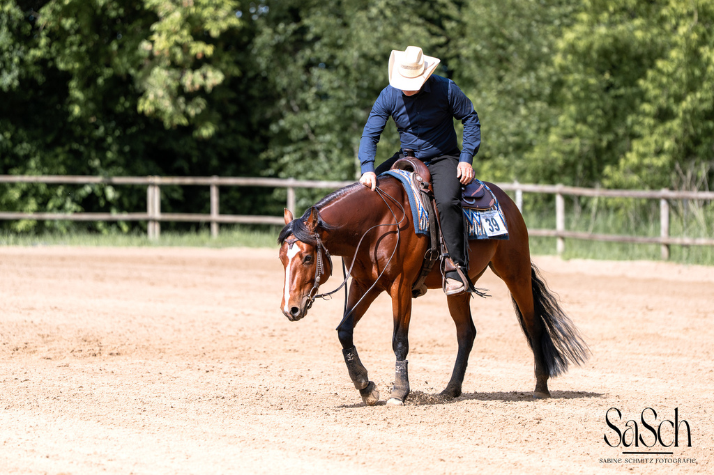 Seine ersten Turnierleistungen konnten sich sehen lassen. Diverse Platzierungen in Reining, Ranch Riding und Basis, darunter der Landesmeistertitel B/BRA in der JUPF Reining.
